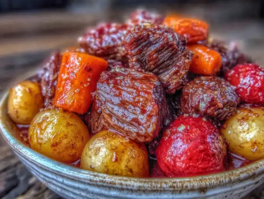- Simple Ingredients: No need for exotic items—everything’s pantry-friendly, with fresh root vegetables and a modest splash of red wine adding depth.