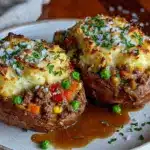 Keywords: shepherd's pie, stuffed sweet potatoes, comfort food, ground beef, easy dinner, weeknight meal, cozy recipe