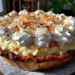 Keywords: coconut cream pie, homemade pie, creamy dessert, coconut dessert, easy pie recipe, coconut cream filling, toasted coconut, whipped cream topping