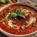 A comforting and creamy tomato basil soup made from scratch with roasted tomatoes and fresh basil, perfect for cozy dinners and quick lunches.