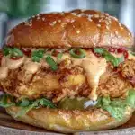 A quick and easy crispy chicken sandwich featuring double-dredged chicken breasts fried to golden perfection and topped with a creamy, spicy mayo. Perfect for casual meals and crowd-pleasing with a balance of heat, creaminess, and crunch.