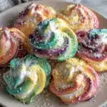 These colorful and airy meringue bites feature a crisp exterior with melt-in-your-mouth centers, perfect for celebrations and nostalgic treats.