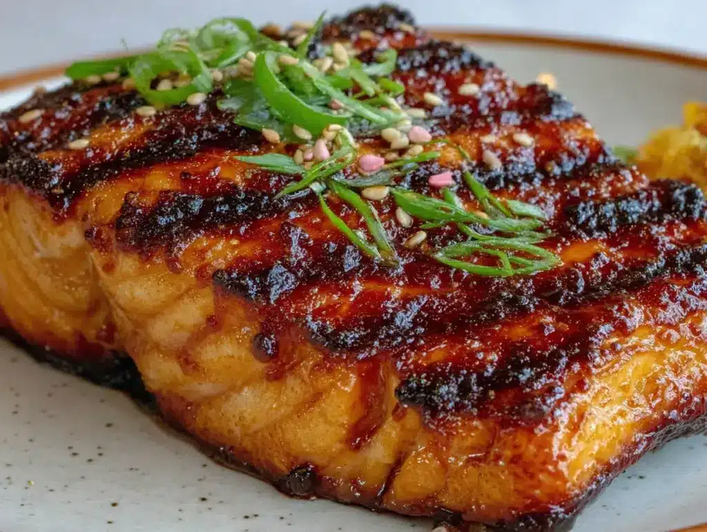 - Serve: Transfer salmon to plates and garnish with sliced green onions and toasted sesame seeds. The glaze will still be sticky and glossy—just how you want it.