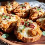 These crispy pizza bites combine a crunchy baked crust with creamy Alfredo sauce, tender chicken, and melty mozzarella, making them perfect for game day snacks or parties.