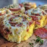 These crispy, cheesy pinwheel bites combine melted mozzarella and cheddar with tangy ranch and zesty pepperoni wrapped in flaky puff pastry, perfect for game day snacks or parties.