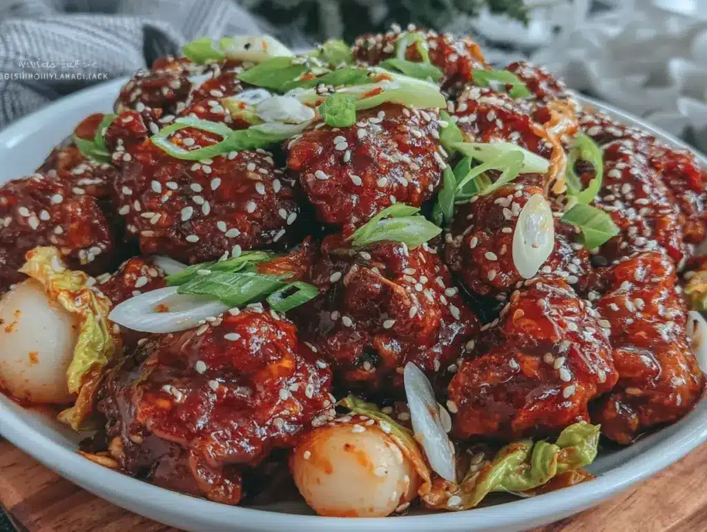 A bold and comforting spicy Korean stir-fry featuring tender chicken thighs, chewy rice cakes, and crunchy cabbage in a spicy-sweet gochujang sauce. Perfect for quick weeknight dinners or sharing with friends.