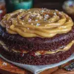 A rich and moist chocolate cake with a unique umami miso frosting that balances sweet and savory flavors, perfect for any occasion.