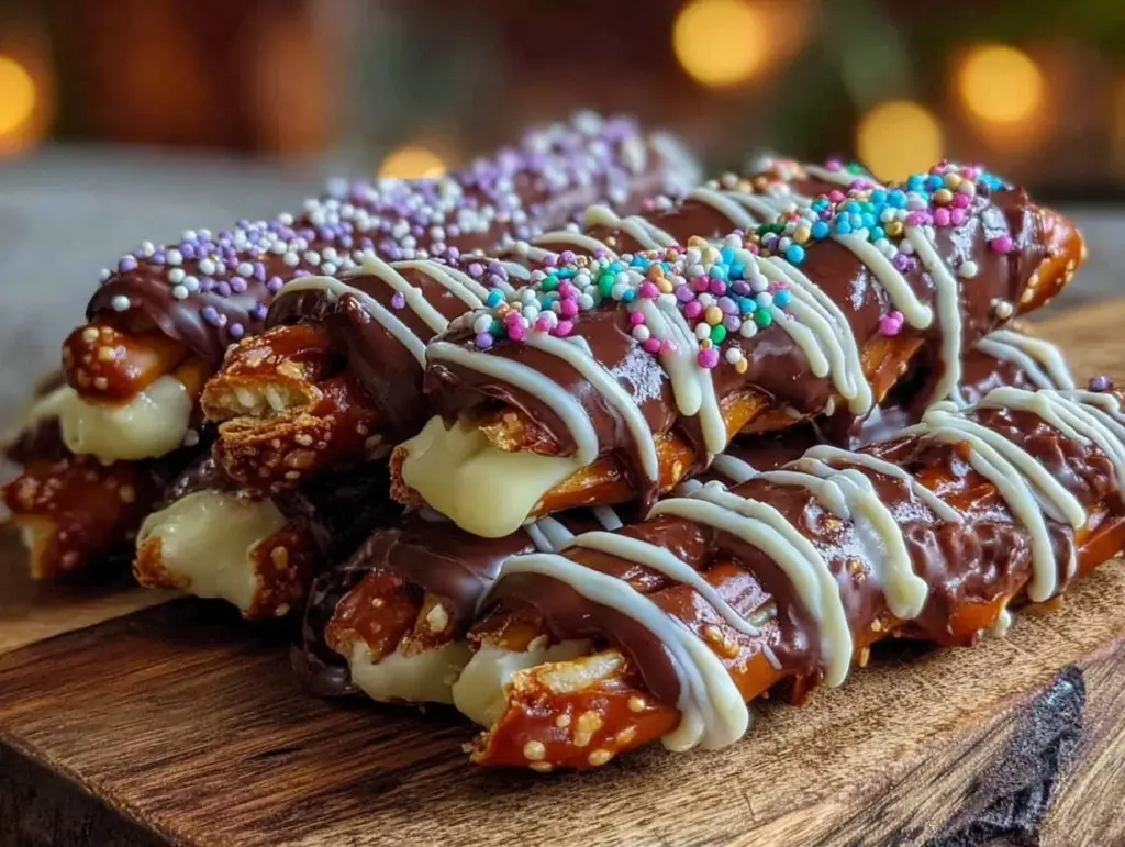 Serve these pretzel rods at room temperature for the best texture—crispy pretzel with delightfully firm chocolate. They make a fantastic addition to party tables, snack boards, or even as a fun after-dinner treat.