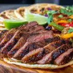 This recipe features tender flank steak marinated in a rich beer and spice blend, grilled to perfection and served with sautéed peppers and onions in warm tortillas. It’s a quick, easy, and crowd-pleasing dinner perfect for weeknights or gatherings.