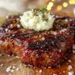 A simple yet special grilled ribeye cap steak topped with a rich garlic blue cheese butter, perfect for impressing at any dinner occasion.