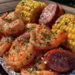 A quick and easy grilled shrimp boil foil packet recipe featuring shrimp, corn, and spicy andouille sausage, perfect for outdoor cooking and packed with bold smoky flavors.
