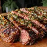 This grilled tri-tip recipe features a bold garlic herb chimichurri marinade that tenderizes the meat and infuses it with vibrant, fresh flavors. Perfect for casual gatherings, it offers a juicy, flavorful steak experience with simple ingredients and easy prep.