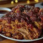 A tender, smoky pulled pork shoulder slow-smoked and basted with a tangy vinegar-based Carolina mop sauce, perfect for backyard cookouts and gatherings.