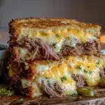 Keywords: smoked brisket, grilled cheese, Texas toast, BBQ sandwich, comfort food, easy recipe, cheesy sandwich