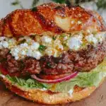A juicy and flavorful lamb burger blended with crumbled feta and fresh herbs, topped with creamy homemade tzatziki sauce. Perfect for spring and summer gatherings, this recipe balances Mediterranean freshness with simple ingredients.