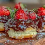 These fluffy chocolate-dipped strawberry cloud donuts are easy to make, perfect for breakfast or brunch, and feature a light, airy texture with fresh strawberries and a silky chocolate coating.