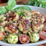 A quick and easy fresh chicken salad featuring tender chicken, vibrant basil pesto, creamy mozzarella, and fresh mixed greens. Perfect for any occasion, this flavorful salad comes together in under 30 minutes.