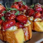 Keywords: strawberry bruschetta, whipped feta, balsamic vinegar, toasted brioche, easy appetizer, summer recipe, quick snack