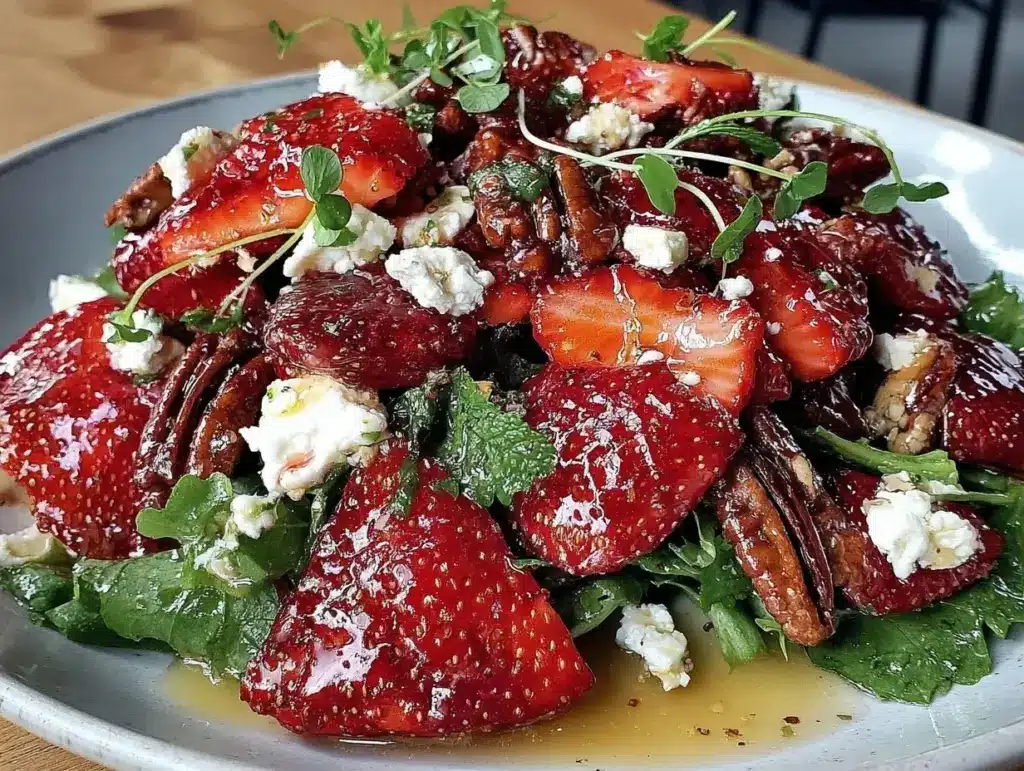 “You know that moment when you bite into something unexpectedly delightful, and it just sticks with you? That’s exactly what happened one sunny Saturday afternoon at my friend Olivia’s backyard brunch. She wasn’t fussing or going overboard—just tossing together what looked like a simple salad. But the combination of fresh strawberries, creamy goat cheese, and these little crunchy bits of candied pecans had me hooked right away. I mean, honestly, I wasn’t prepared for how those flavors danced together.