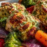 If veggies cook faster than chicken, cover dish loosely with foil for the first 20 minutes to prevent over-browning. Use Greek yogurt instead of mayonnaise or sour cream for a lighter creamy ranch flavor. Stir halfway through baking to redistribute flavors and prevent drying out. Leftovers reheat well covered in the oven at 350°F for 15-20 minutes.