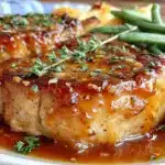 Juicy pork chops seared and glazed with a sweet-tangy honey balsamic sauce, served alongside crispy roasted green beans for a comforting, easy dinner that’s perfect for any occasion.