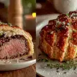A perfectly sized Beef Wellington recipe for two featuring tender beef fillet wrapped in mushroom duxelles, prosciutto, and flaky puff pastry. Ideal for romantic dinners or special occasions without leftovers.