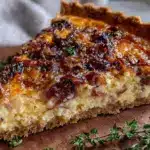 A comforting quiche featuring slow caramelized onions and nutty gruyere cheese wrapped in a flaky butter crust, perfect for brunch, potlucks, or cozy dinners.