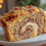 A rolled chicken cordon bleu meatloaf filled with ham and Gruyere cheese, offering a juicy, flavorful twist on classic meatloaf that’s quick, easy, and perfect for dinner parties.