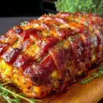 [‘Do not overmix the meat mixture to avoid dense meatloaf.’, ‘Keep the bacon weave chilled before placing on the meatloaf for better shape and crispiness.’, ‘Use a meat thermometer to ensure the internal temperature reaches 160°F (71°C).’, ‘Let the meatloaf rest for 10 minutes before slicing for cleaner cuts.’, ‘If bacon crisps too fast, tent foil over the top to prevent burning.’, ‘For extra crispy bacon, broil for 2-3 minutes at the end, watching closely.’, ‘Glaze is optional but recommended for a tangy-sweet crust.’, ‘Substitute breadcrumbs with almond flour or gluten-free panko for gluten-free version.’, ‘Leftovers can be refrigerated for up to 4 days or frozen for up to 3 months.’]