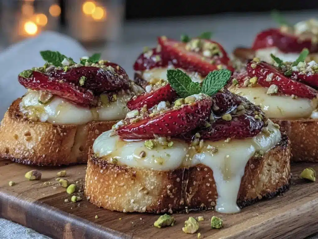 Keywords: Strawberry crostini, Brie appetizer, Easy entertaining, Party food, Quick appetizer, Elegant snacks