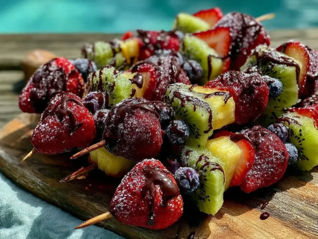 Refreshing Frozen Fruit Kabobs with Chocolate Drizzle Easy Summer Recipe