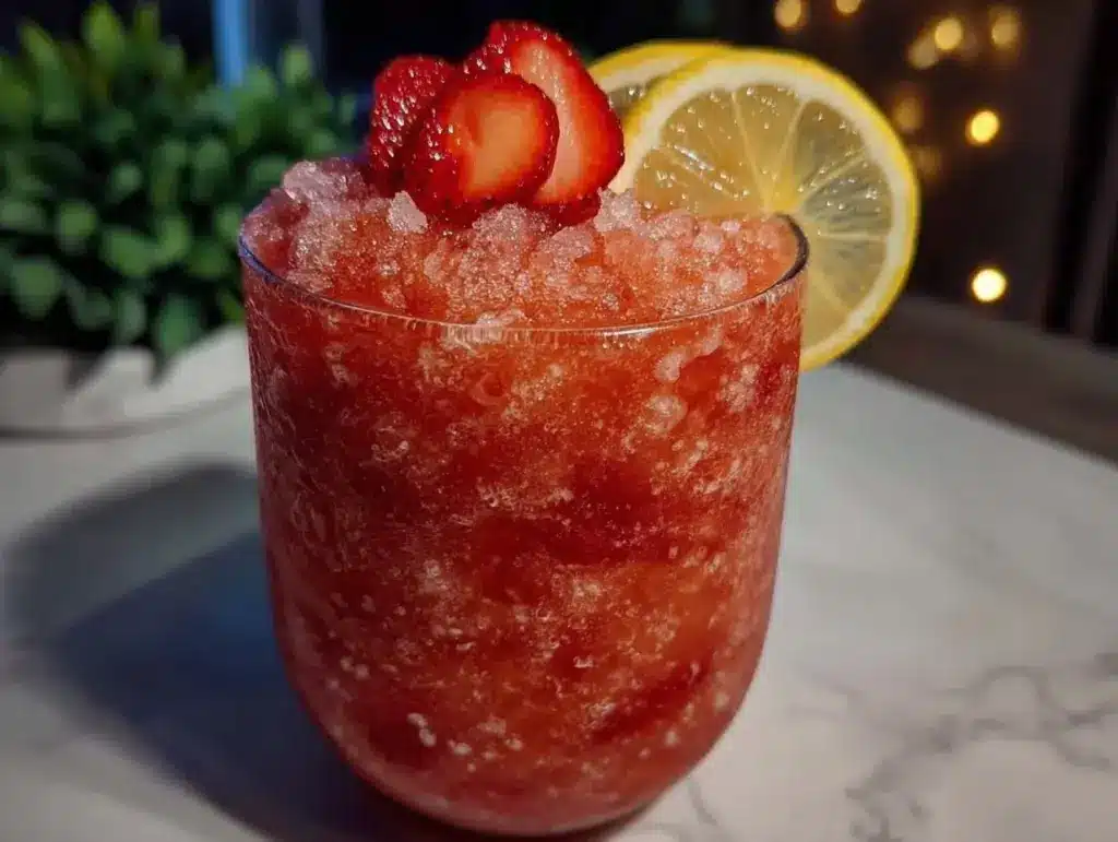 A quick and easy homemade summer drink combining frozen strawberries and fresh lemon juice for a perfectly balanced, refreshing slushie.