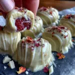 Keywords: white chocolate, raspberry, truffles, Valentine’s Day, homemade candy, easy dessert, party treats, giftable sweets, heart-shaped, berry truffles